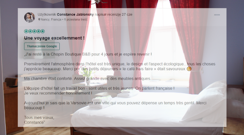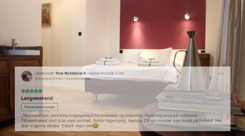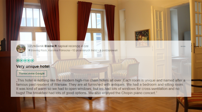 Przez lata nawiązaliśmy wiele przyjaźni. Widzimy ludzi, którzy pozostają z nami, za każdym razem, gdy odwiedzają Warszawę. Zaspokajamy ich szczególne potrzeby, często pomagając osiągnąć cel, który ich tu sprowadza. Niektórzy z powracających albo mają ulubiony pokój, albo chcą być zaskakiwani niepowtarzalnym wystrojem poszczególnych pokoi.